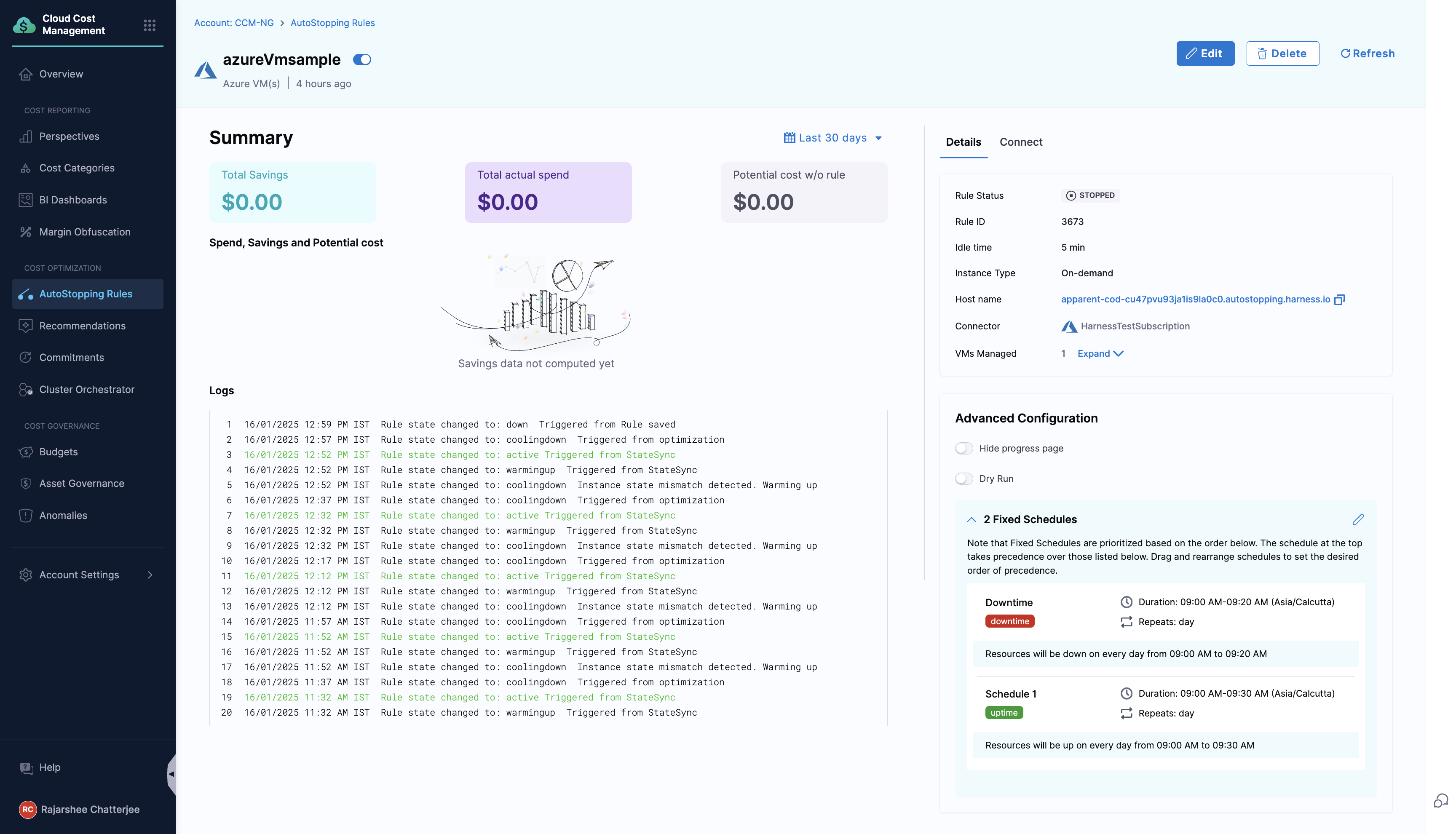 Harness AutoStopping Rules now support overlapping schedules, offering enhanced flexibility for resource management. Users can define multiple fixed schedules within a single AutoStopping rule, even if they overlap. The resulting schedule is determined based on a customizable priority order, which can be adjusted using a drag-and-drop interface.