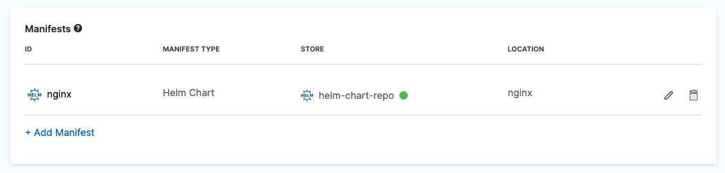 In the Harness service for your Native Helm deployment, in Manifests, select Add Manifest.