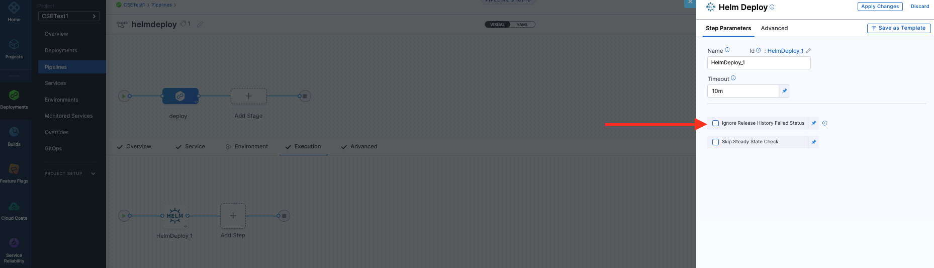 Enable the Ignore Release History Failed Status option to have Harness ignore these errors and proceed with install/upgrade.