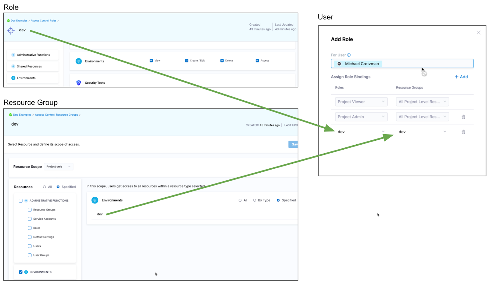 - Create a role and give the user or user group permissions. The Access permission is needed for deployments.