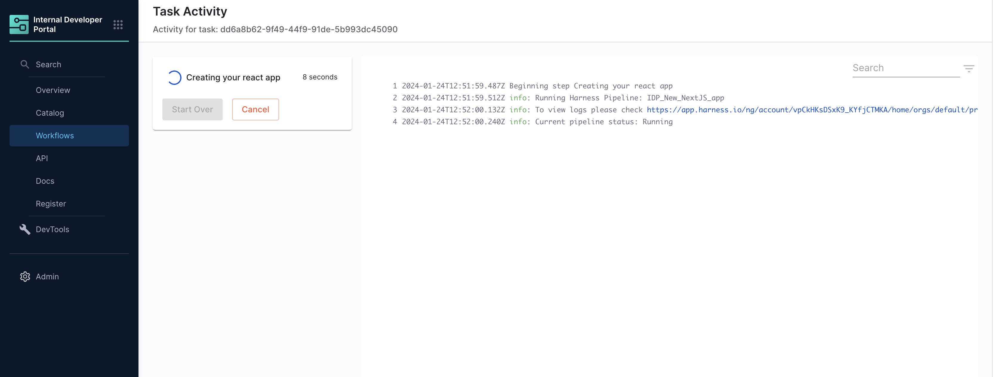 The backend of Harness IDP workflows consists of a library of steps and actions that define the workflow logic.