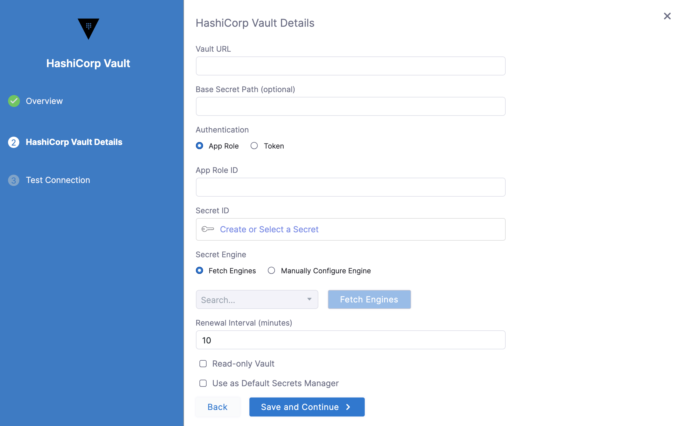 Ensure that the custom AppRole path you configure exists in your HashiCorp Vault. This step is necessary for the authentication to succeed using the custom path.